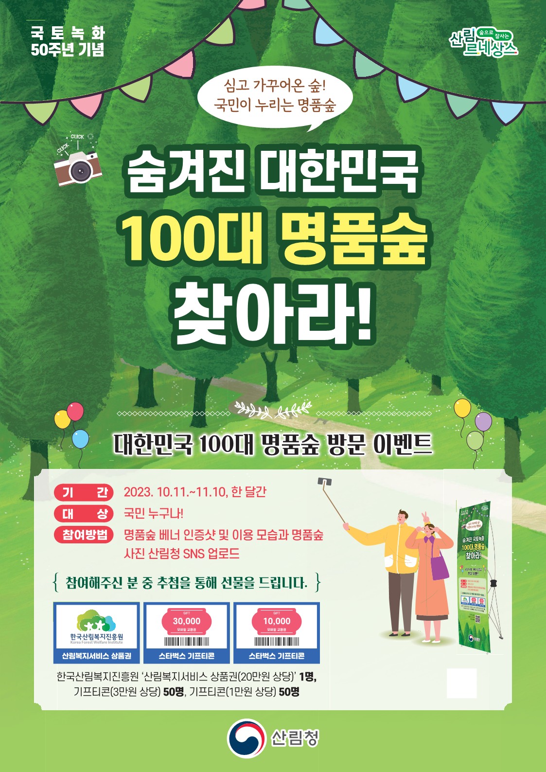 대한민국 100대 명품숲🌲🌳윤제림도 100대 명품숲에 선정되었습니다.👏👏산림청 주관 이벤트로명품숲 방문해서 sns인증샷을 올려주시면추첨을 통해 선물도 드립니다.올해🍁#단풍놀이 🍂는 윤제림에서~